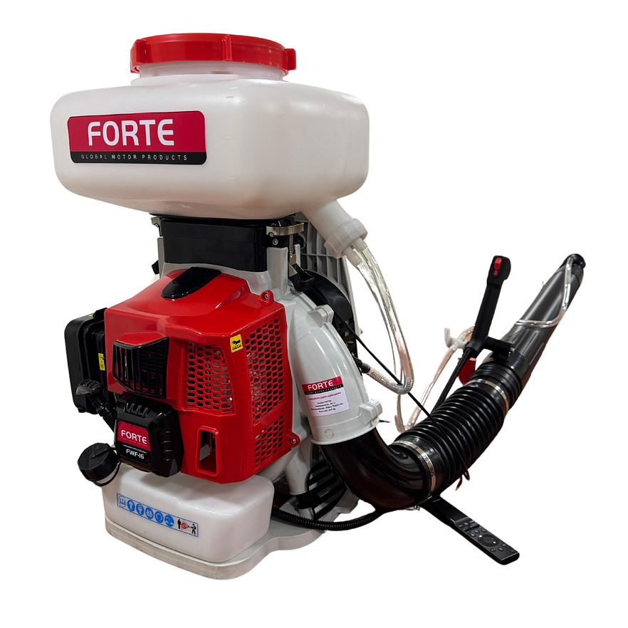La fumigadora de espalda a motor Forte FWF-16 ofrece una solución práctica y eficiente para tareas de fumigación agrícola. Su motor de 65 cc garantiza una excelente presión y cobertura, ideal para cultivos de mediano y gran tamaño. Gracias a su diseño tipo mochila, permite trabajar cómodamente durante largas jornadas. Su sistema de atomización tipo cañón la hace útil también para aplicar polvos o líquidos, mejorando la distribución y reduciendo el esfuerzo físico. Es una opción resistente, liviana y versátil para agricultores y trabajadores del campo que necesitan una fumigadora cañón confiable.